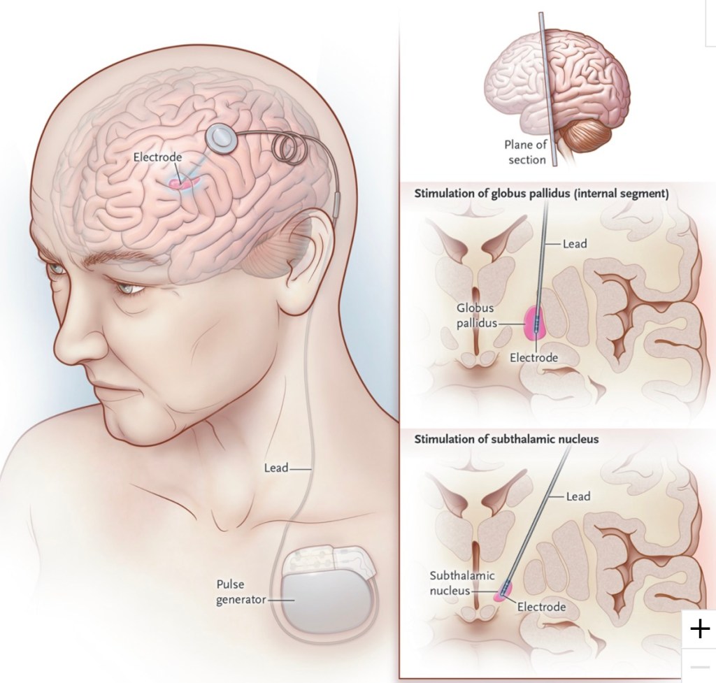 “Turns out” that for a variety of reasons…good reasons, caring reasons, persuasive reasons…the brain folks at Kaiser (and the colander gurus at both Kaiser and UCSF) think deep brain stimulation is a better option for me. After consulting with Cathy and the fam, I’ve decided to give it a try.