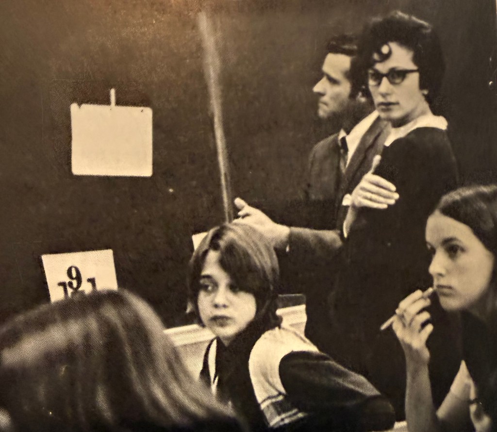 Mrs. Hogan was a no-nonsense 8th grade English teacher at Rincon Valley Junior High. (“Home of the Mighty Falcons”). Here she is. The gal with her right hand on her shoulder giving me the stank eye.