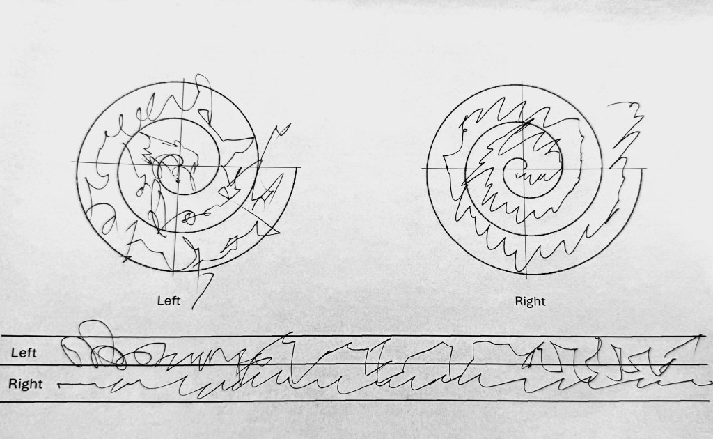 The plan was to show them videos of me scribbling, shaking and wobbling.  My psych test results. My history. My meds. My CT and MRI’s. She told us she would give it her best shot, but the decision was not hers to make. It was the committee’s and, as soon as she knew, she would write.