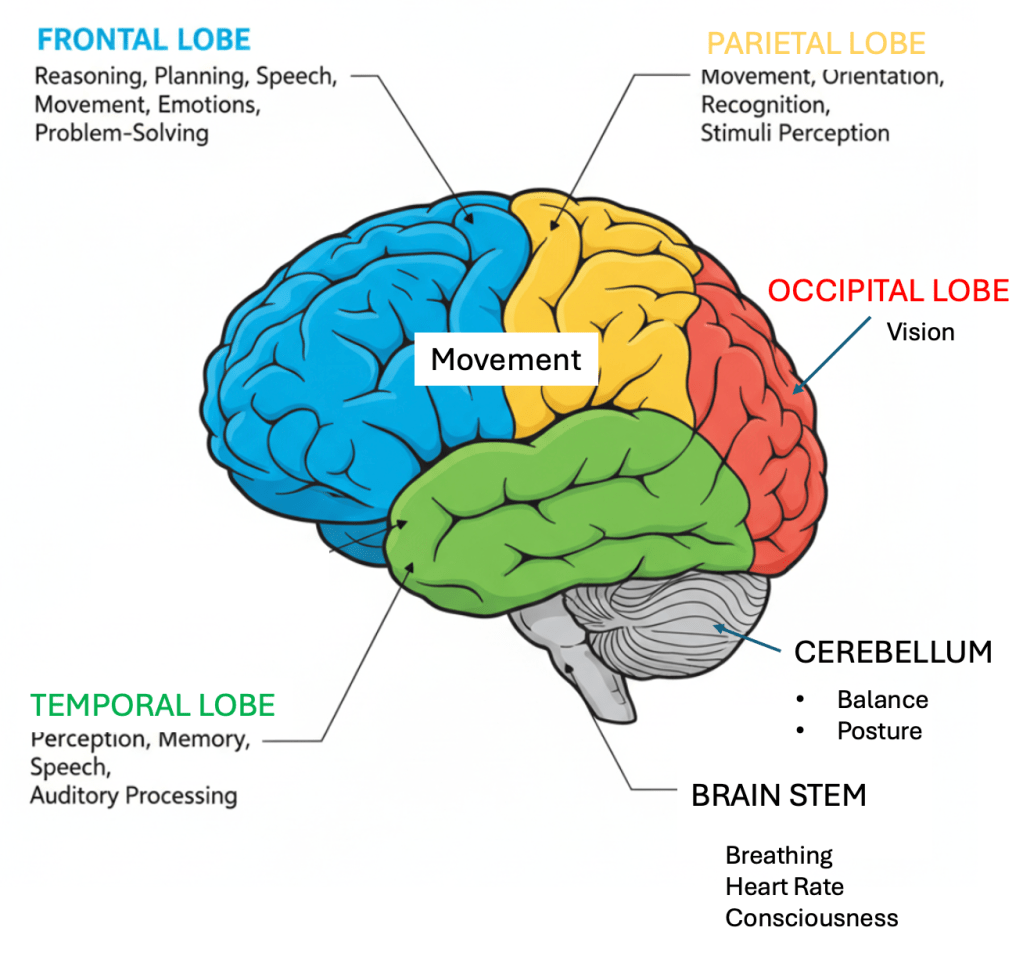 Now, every day we are finding out that a lot of what we thought yesterday about the brain is probably wrong today. The spooky little blob talks to itself in ways we don’t yet understand. Kinda like trees. That said, we’re pretty sure the ol’ noggin separates brain business into compartments. I think of them as departments. Your scientist types call them lobes.