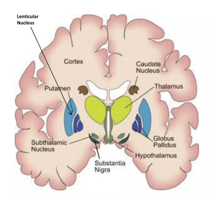 Here’s the basal ganglia in a front cross section: